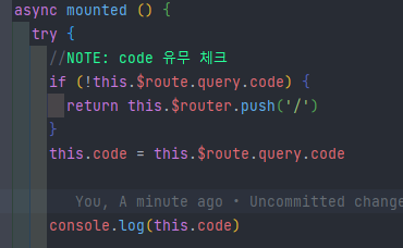 kakao-callback 페이지 URL Query로 인가코드가 발급된다.