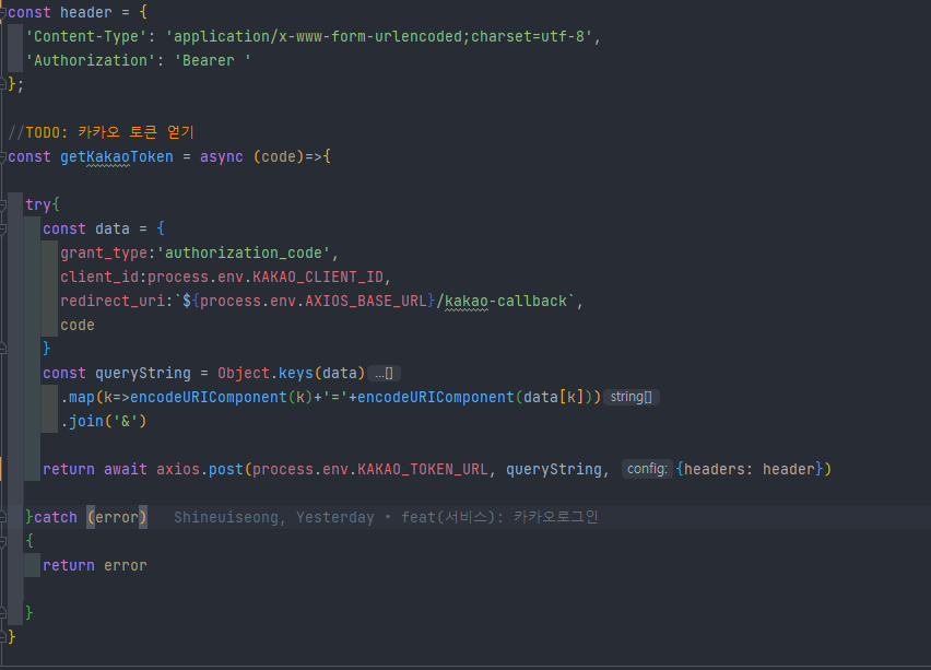 예를 들어 express에서 인가코드만 받고 카카오 토큰 발급받는 코드