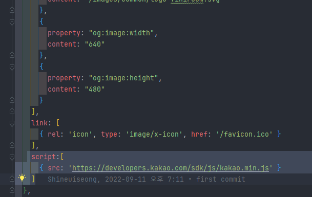 nuxt.config 안에 카카오 SDK 스크립트 설정