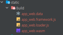 - Unity에서 빌드한 Webgl 파일을 Nuxt static(정적파일) 폴더에 설정합니다.