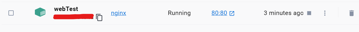 123b270b494d nginx "/docker-entrypoint.…" About a minute ago Up About a minute 0.0.0.0:80->80/tcp webTest